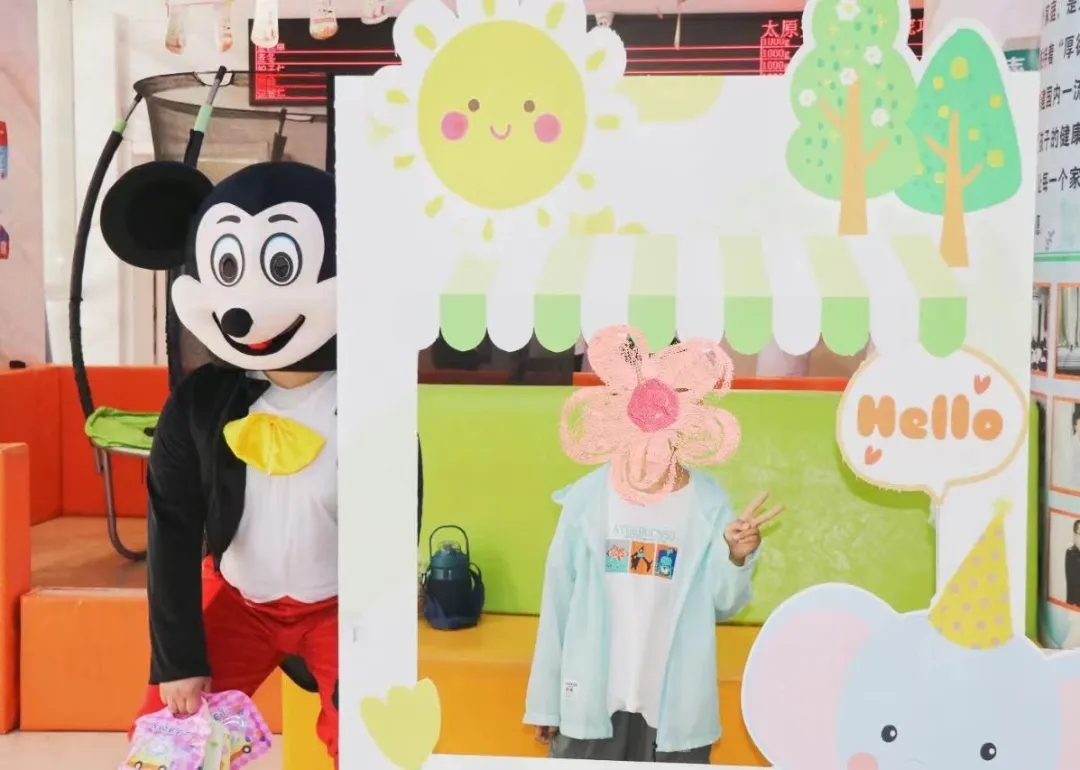 活动一开始,穿着米奇服装的工作人员就忙碌起来。只见他手持精心准备的小礼物,亲切、活泼地走到孩子们身边,与他们互动、游戏,并将礼物送到他们手中。孩子们兴奋地接过礼物,有的迫不及待地拆开,有的则紧紧抱在怀里,眼中满是喜悦。