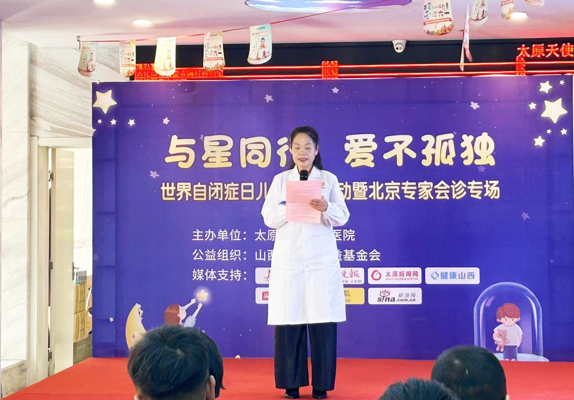 正在太原天使儿童医院进行会诊的清华大学第二附属医院易维芬教授也发表了活动讲话,易教授表示:“作为医生,我们深知自闭症的复杂性和治疗的艰巨性,我们也从未放弃过对自闭症的研究和探索。在每一位患者的治疗过程中,我们都能深刻体会到家长的艰辛和付出。我们呼吁社会各界继续关注自闭症事业,为自闭症患者提供更多的支持和帮助。”